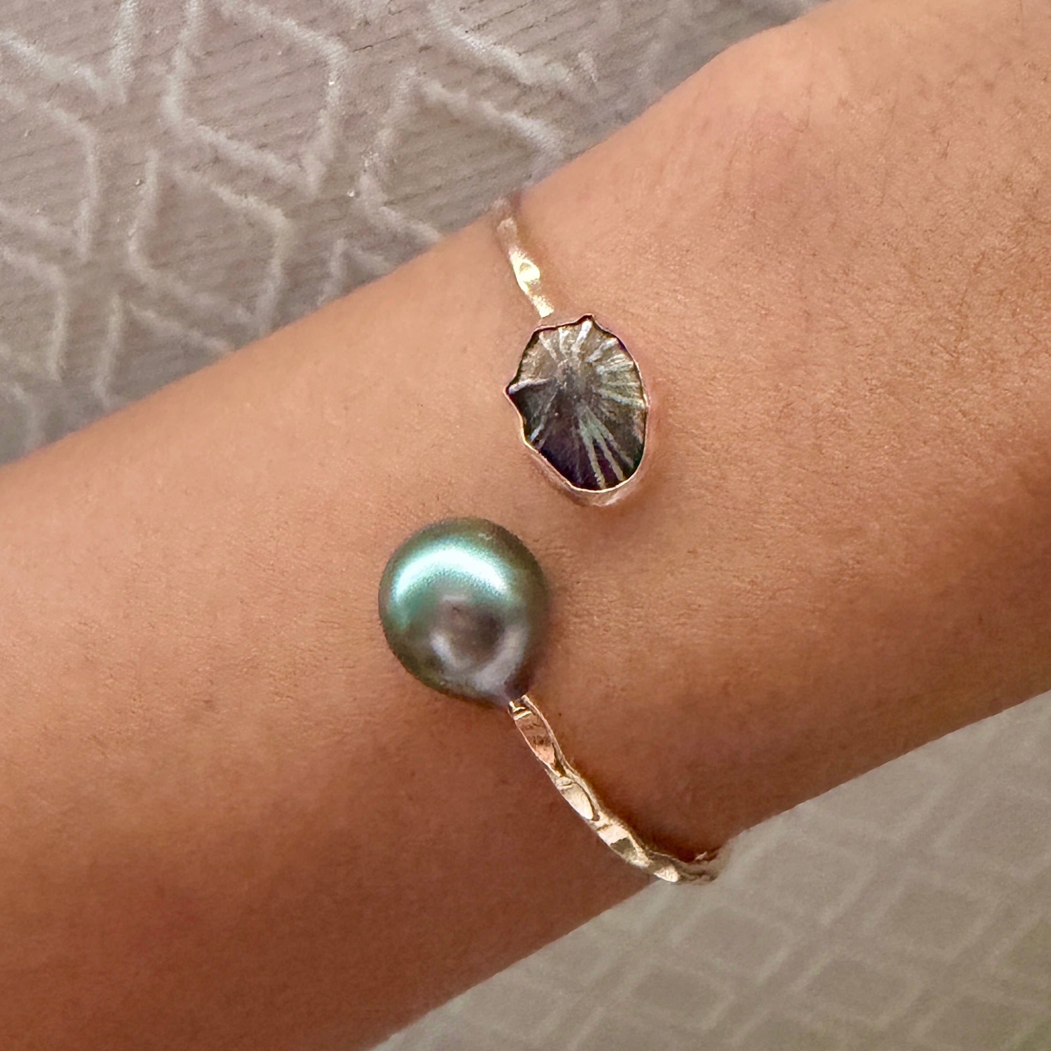 A. TWIST CUFF OPIHI & TAHITIAN PEARL M/L GF (B19)
