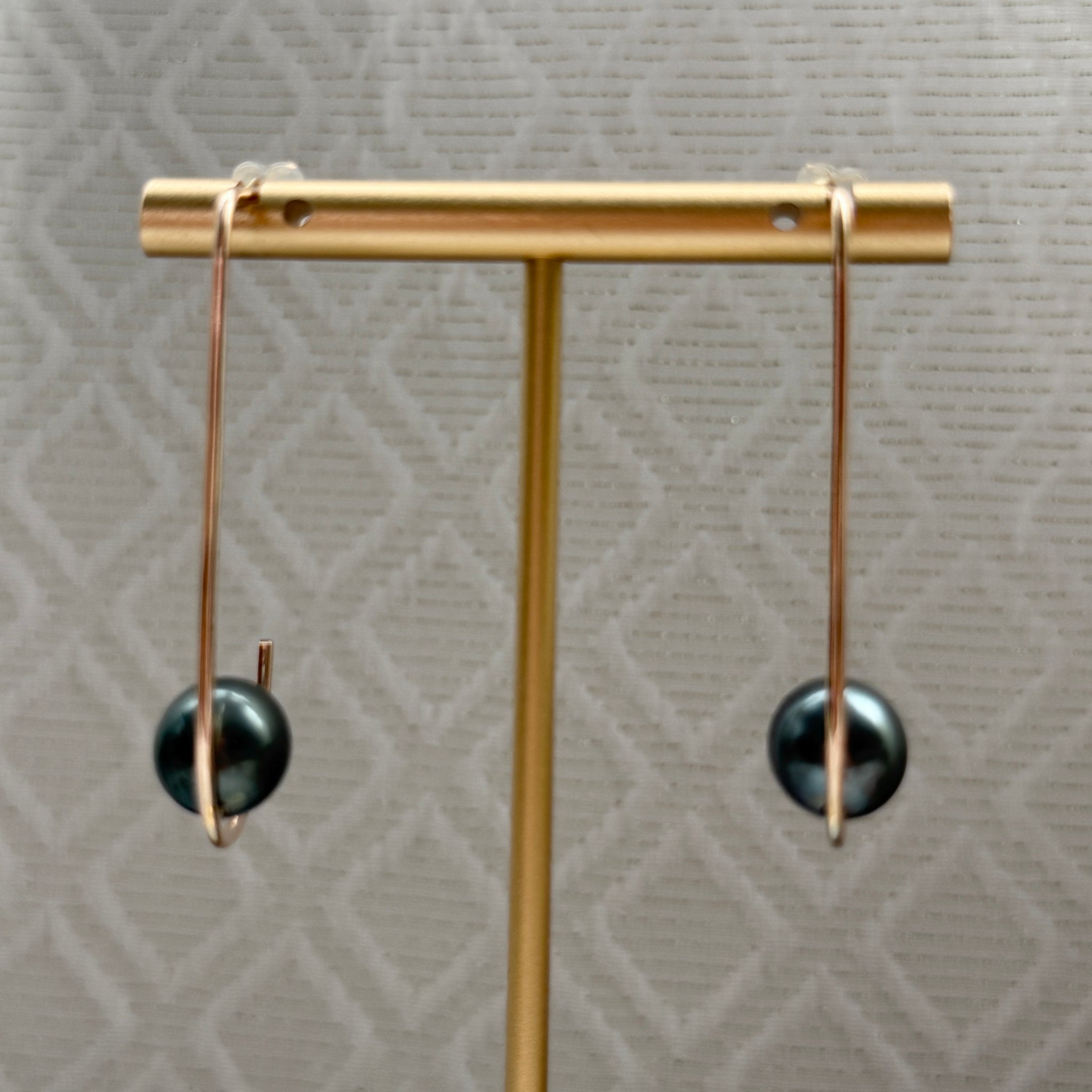 BLUE GREEN TAHITIAN PEARL SWOOP EARRINGS GF (E2)