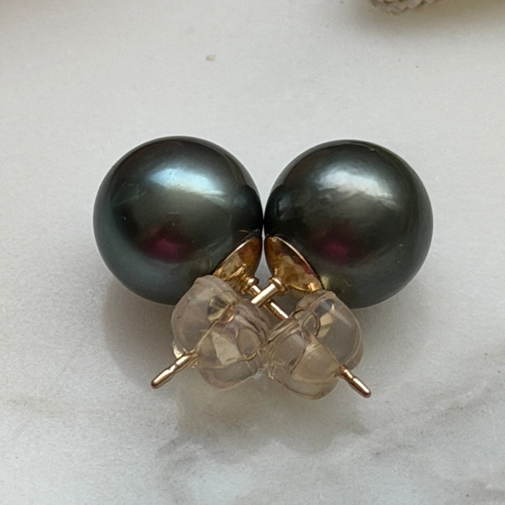 9.8MM AA+ TAHITIAN PEARL STUDS WITH BLUE GRAY HUES
