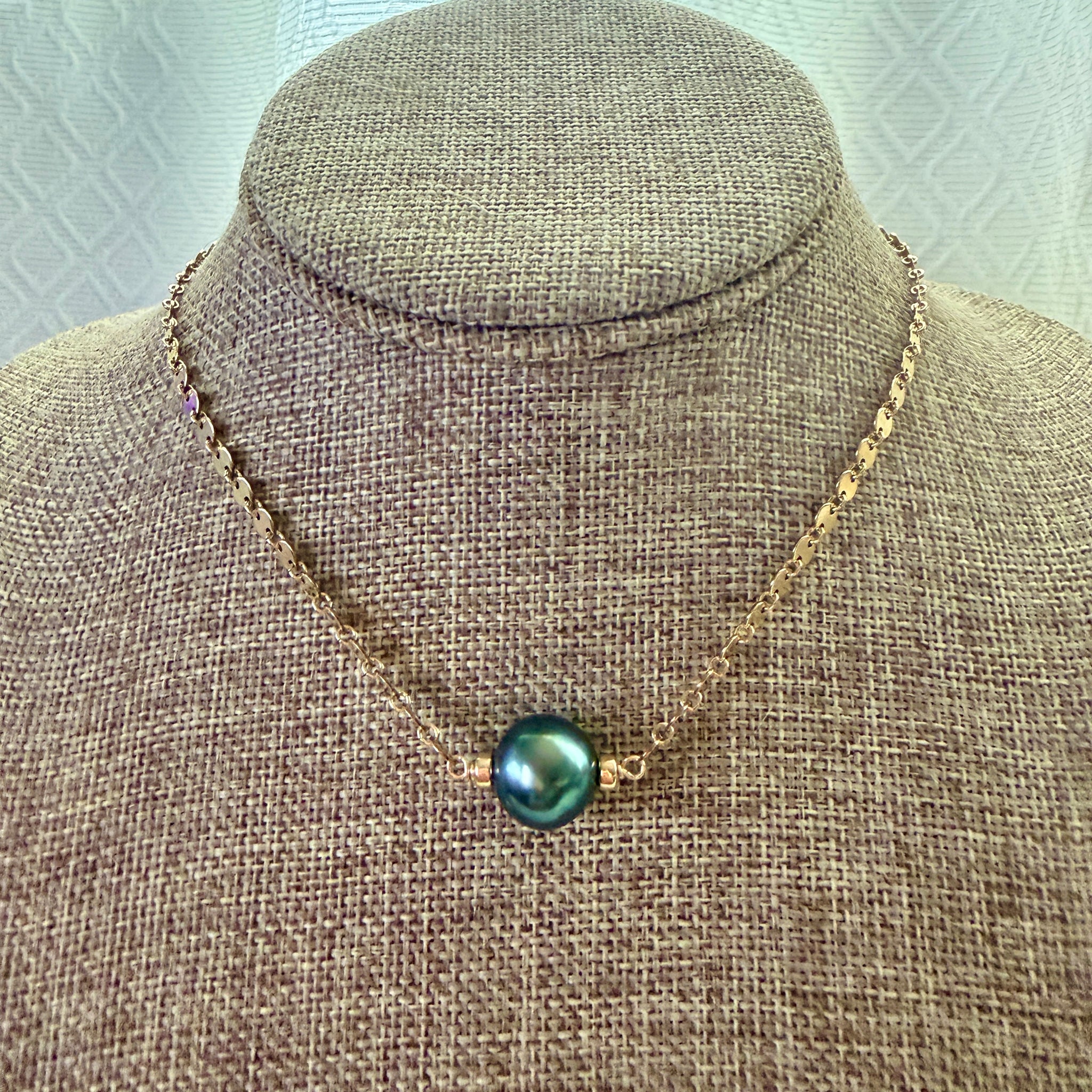 BOMBUCHA BLUE GREEN TAHITIAN DISCO NECKLACE 17.5" GF (N33)