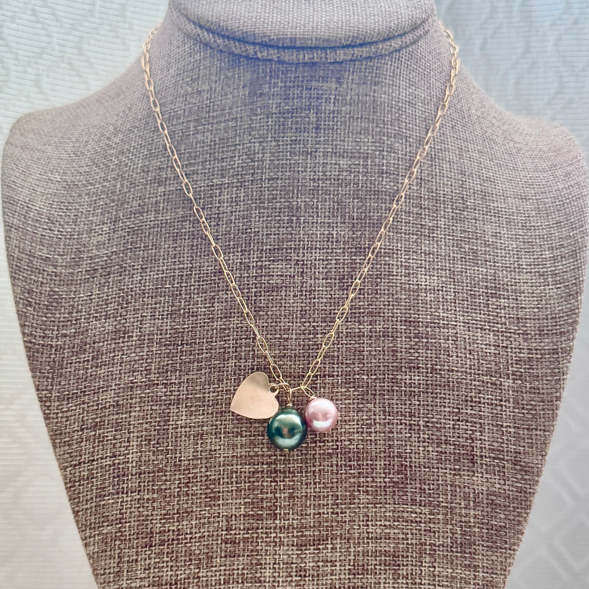 MINI TAHITIAN & EDISON CLUSTER NECKLACE 17" GF (N3)