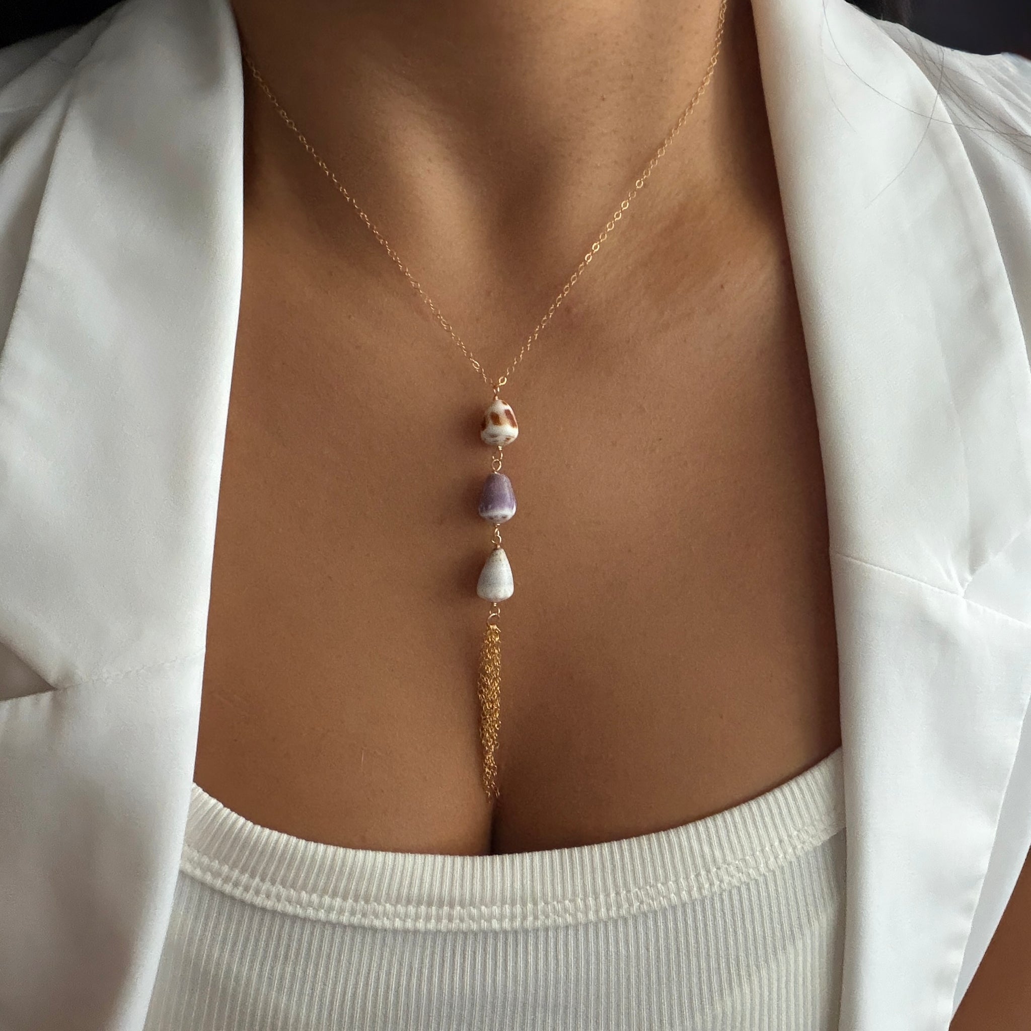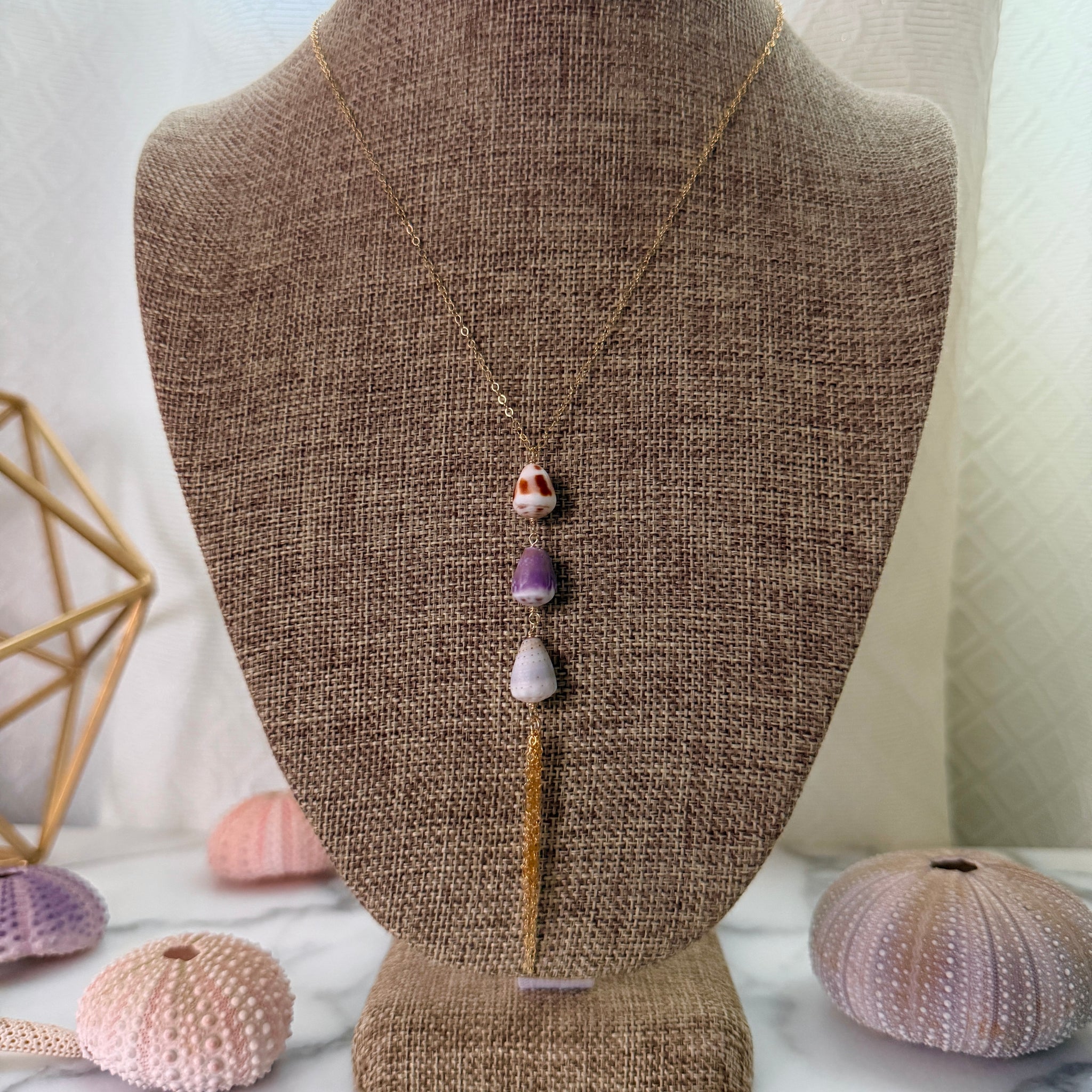 TRICOLOR CONE SHELL TASSEL Y NECKLACE 17" GF (N22)